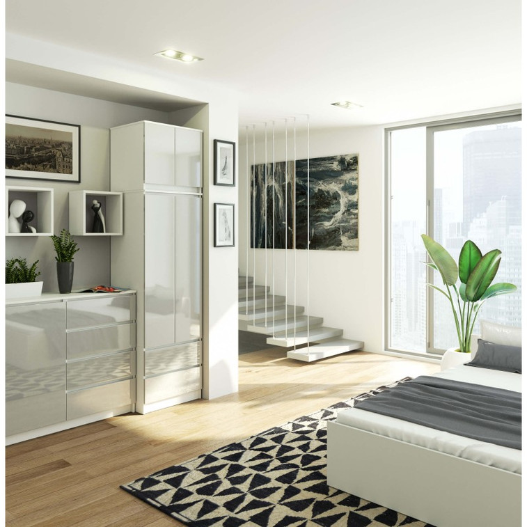 Šatníková skriňa s nadstavbou S60 2D 2SZ CLP, biela/sivý lesk.