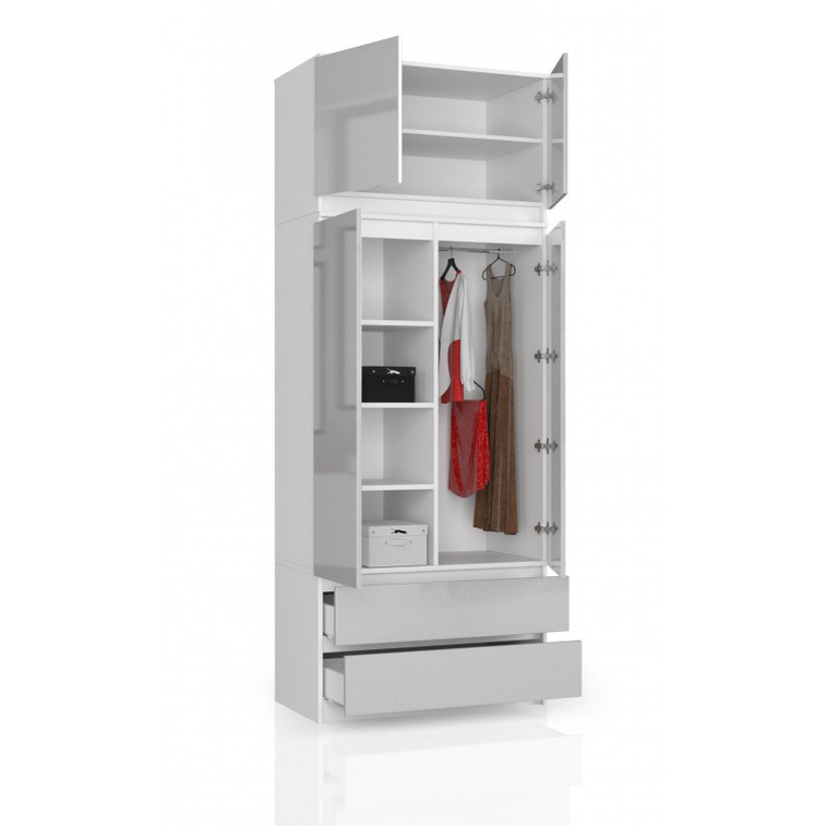 Šatníková skriňa s nadstavbou S90 2 dvierka 2 zásuvky biela/metalic lesk