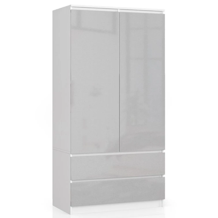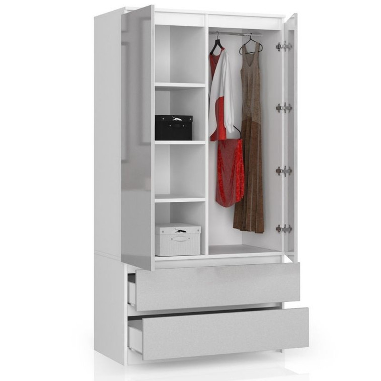 Šatníková skriňa S90 2 dvierka 2 zásuvky biela/metalic lesk