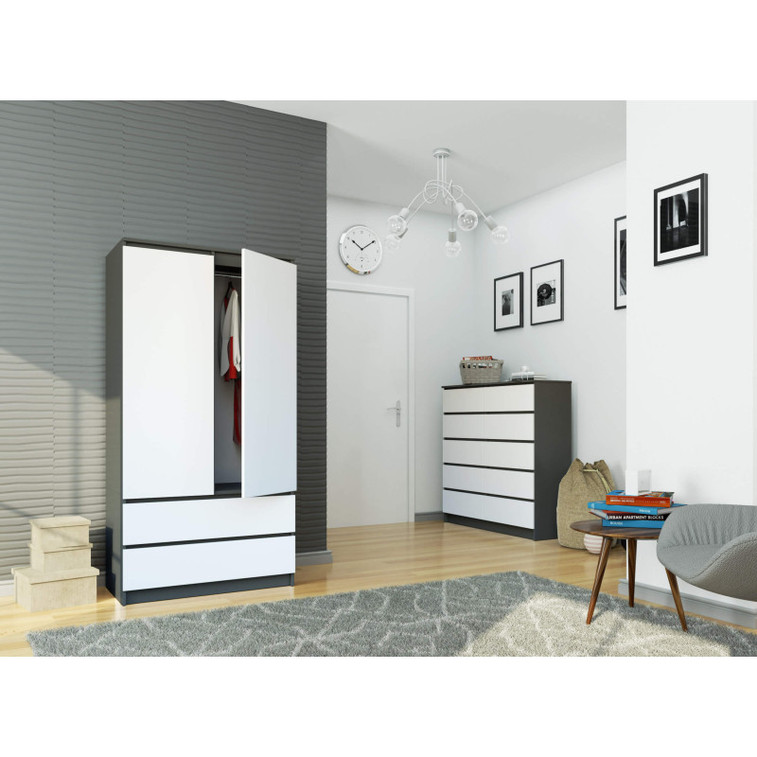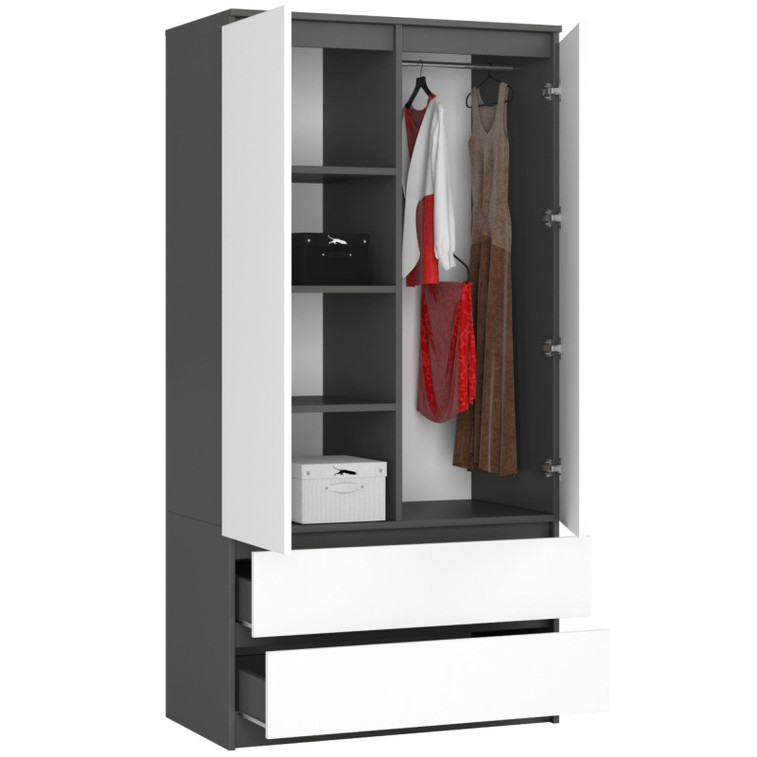 Šatníková skriňa S90 2D 2SZ CLP, grafit/biela.