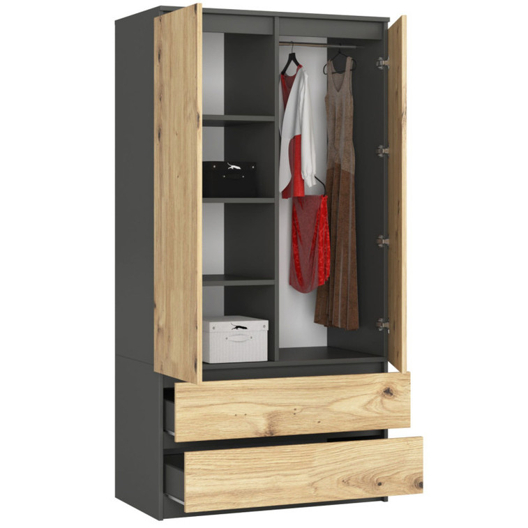 Šatníková skriňa S90 2D 2SZ CLP, grafit/dub artisan.