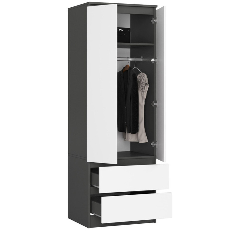 Šatníková skriňa STAR S60 2D 2SZ, grafit/biela.