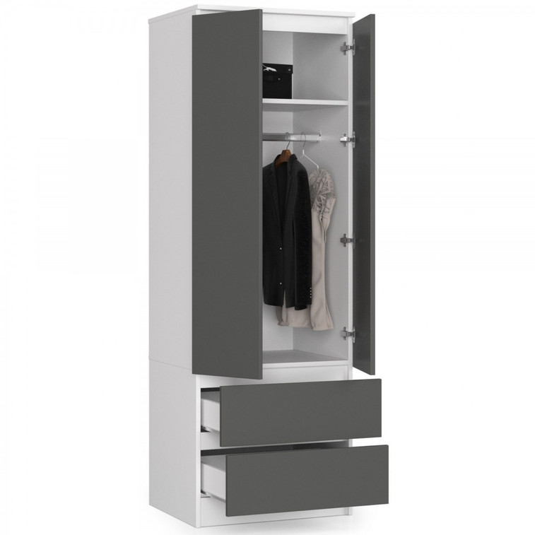 Táto šatníková skriňa Vás očarí svojou jednoduchosťou a eleganciou. Skvele doplní obývaciu izbu, veľké vstupné haly alebo spálňu. Vnútri skrine je polica a šatníková tyč