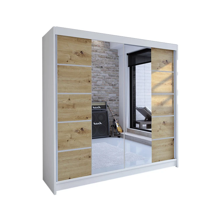 Priestranná šatníková skriňa TALIN V je vyrobená v modernom dizajne a ponúka veľké množstvo praktického úložného priestoru (viď obrázok). Neoceniteľný je systém trendových posuvných dverí so zrkadlom, ktoré uľahčujú manipuláciu a šetria priestor v interiéri. Korpus a dvere sú vyrobené z kvalitného lamina (16 mm). Šatníkovou skriňou TALIN V si môžete doplniť existujúce vybavenie izby. Údržba je jednoduchá, povrch je ľahko umývateľný, odolný voči pôsobeniu vody a zvýšenej teplote. Skriňa je dodávaná v demonte a v rôznom farebnom prevedení.