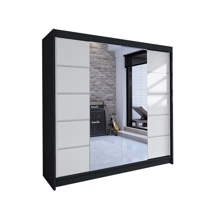 Priestranná šatníková skriňa TALIN V je vyrobená v modernom dizajne a ponúka veľké množstvo praktického úložného priestoru (viď obrázok). Neoceniteľný je systém trendových posuvných dverí so zrkadlom, ktoré uľahčujú manipuláciu a šetria priestor v interiéri. Korpus a dvere sú vyrobené z kvalitného lamina (16 mm). Šatníkovou skriňou TALIN V si môžete doplniť existujúce vybavenie izby. Údržba je jednoduchá, povrch je ľahko umývateľný, odolný voči pôsobeniu vody a zvýšenej teplote. Skriňa je dodávaná v demonte a v rôznom farebnom prevedení.