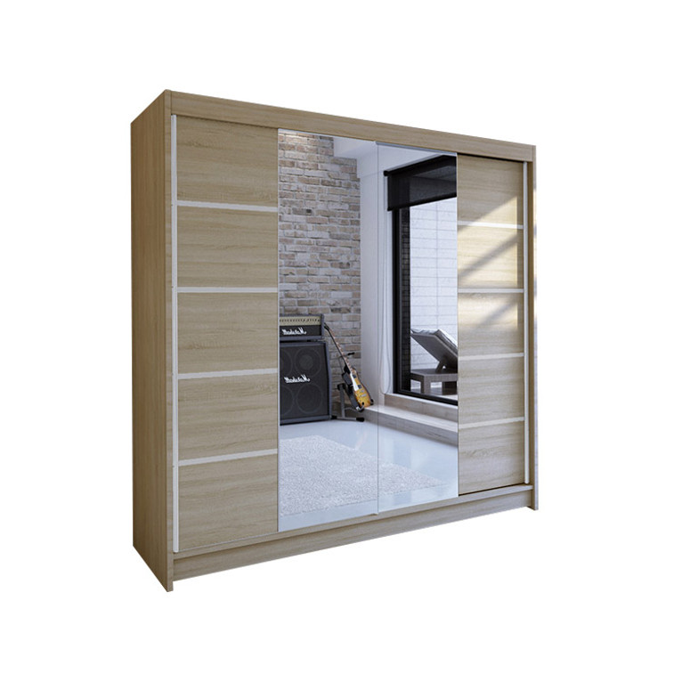 Priestranná šatníková skriňa Talin V je vyrobená v modernom dizajne a ponúka veľké množstvo praktického úložného priestoru (viď obrázok). Neoceniteľný je systém trendových posuvných dverí so zrkadlom, ktoré uľahčujú manipuláciu a šetria priestor v interiéri. Korpus a dvere sú vyrobené z kvalitného lamina (16 mm). Šatníková skriňa Talin V môže doplniť existujúce vybavenie izby. Údržba je jednoduchá, povrch je ľahko umývateľný, odolný voči pôsobeniu vody a zvýšenej teplote. Skriňa je dodávaná v demonte a v rôznom farebnom prevedení.
