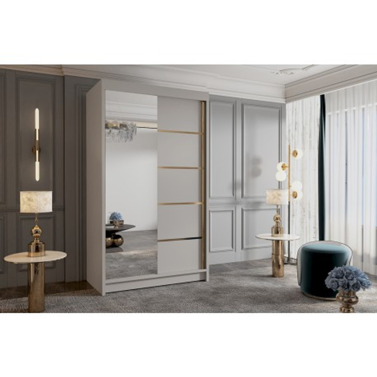 Posuvná šatníková skriňa Vigo III kombinuje klasickú jednoduchosť a moderný dizajn. Zrkadlo umiestnené na dverách dodáva svoje jedinečné kúzlo. Je ideálna ako šatníková skriňa do predsiene alebo miesto na uloženie oblečenia v spálni alebo iných drobností každodennej potreby. Vnútro šatníkovej skrine je rozdelené na dve rovnaké časti. Na jednej strane sú police a na druhej strane je závesná šatníková tyč.