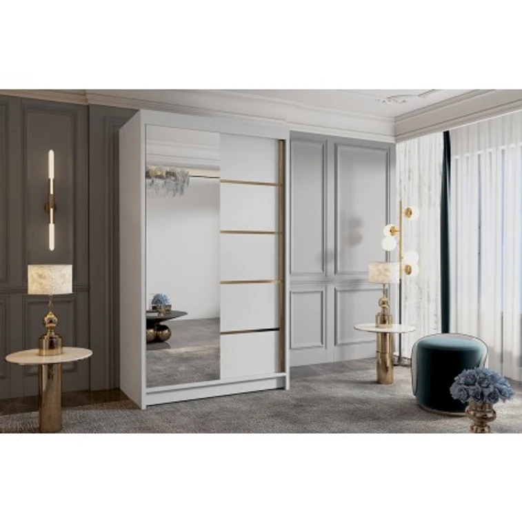 Posuvná šatníková skriňa Vigo III kombinuje klasickú jednoduchosť a moderný dizajn. Zrkadlo umiestnené na dverách dodáva svoje jedinečné kúzlo. Je ideálna ako šatníková skriňa do predsiene alebo miesto na uloženie oblečenia v spálni alebo iných drobností každodennej potreby. Vnútro šatníkovej skrine je rozdelené na dve rovnaké časti. Na jednej strane sú police a na druhej strane je závesná šatníková tyč.