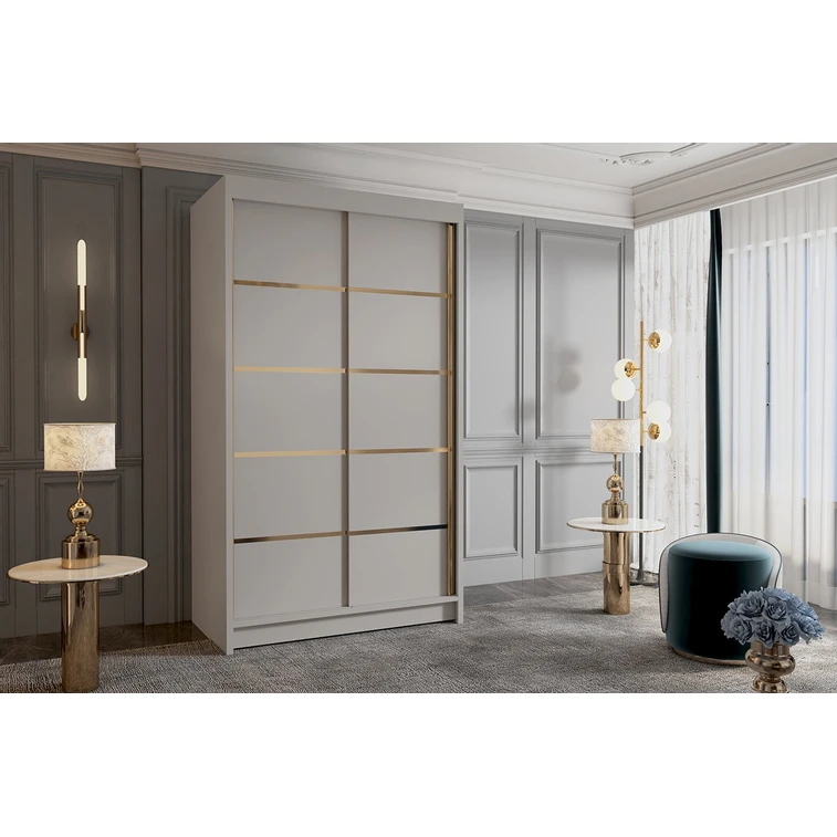 Posuvná šatníková skriňa Vigo IV kombinuje klasickú jednoduchosť a moderný dizajn. Je ideálna ako šatníková skriňa do predsiene alebo miesto na uloženie oblečenia v spálni alebo iných drobností každodennej potreby. Vnútro šatníkovej skrine je rozdelené na dve rovnaké časti. Na jednej strane sú police a na druhej strane je závesná šatníková tyč.