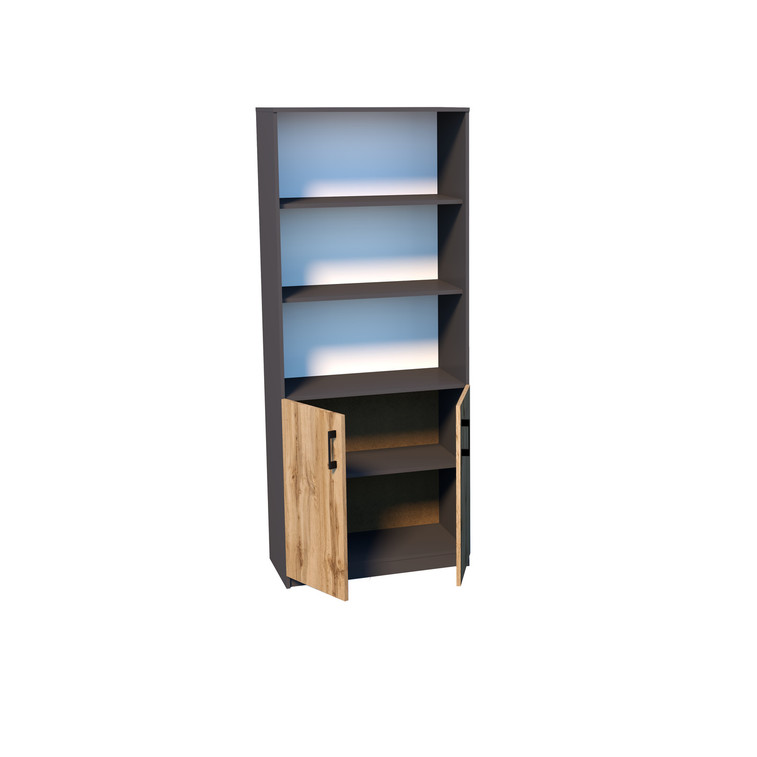 Skriňa Mark R007 sa skladá z 2 dvierok, za ktorými sa nachádzajú 2 policové úložné priestory na oblečenie, hračky, náradie či ďalšie veci v domácnosti alebo na pracovisku, a ďalšie 3 policové úložné priestory, ktoré sú otvorené a vhodné napríklad na knihy alebo vystavenie či uskladnenie osobných vecí či uskladnenie zakladačov. Vyznačuje sa dobrou kvalitou v pomere k cene. Je vyrobená z lamina hrúbky 16 mm.