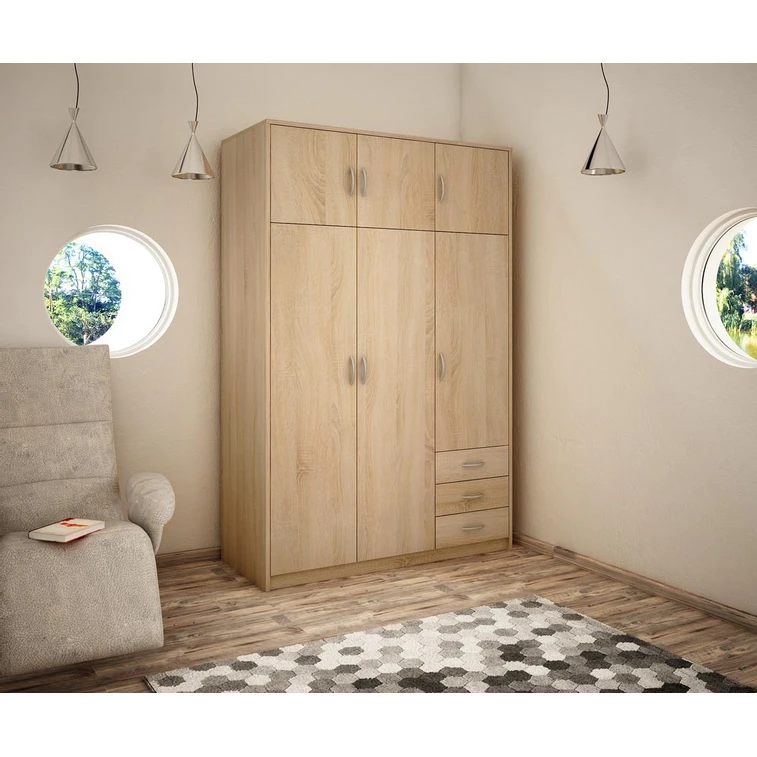 Jednoduchá a moderná skriňa Wiktoria 6D3SZ. Je vyrobená z pevnej laminovanej dosky, ktorá je odolná proti oderu a poškodeniu. Univerzálny vzhľad splní očakávania každého, kto ocenia kombináciu jednoduchosti a elegancie.