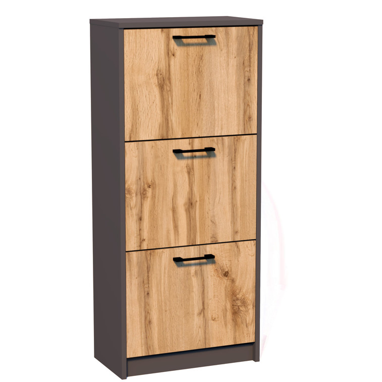 Tento produkt je možné jednoducho zavesiť na stenu, to mu dáva ďalší rozmer využitia. Skrinka na topánky je vybavená tromi výklopnými priestormi na uloženie topánok. Skrinka na topánky je dodávaná v jednom balení spolu s návodom na montáž.