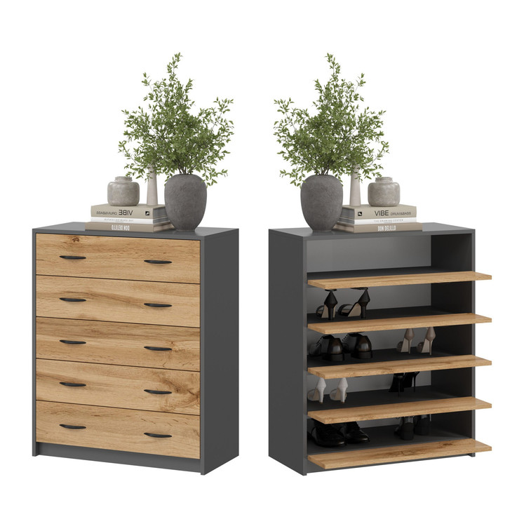 Skrinka na topánky K022 - Dub wotan/grafit.