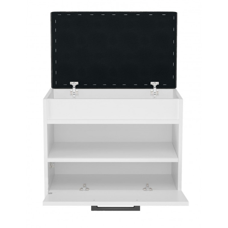 Pohodlná skrinka na topánky s čalúneným sedákom a priehradkou na drobnosti.