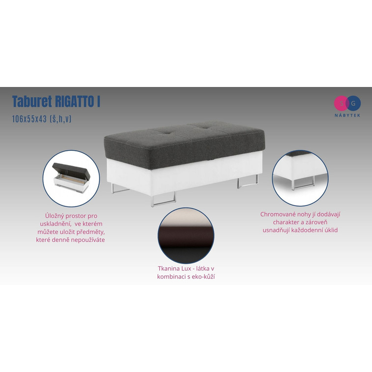 Kvalitný a moderný taburet RIGATTO I. Pevná konštrukcia z dreva a laminovej dosky. Moderný dizajn vhodný do všetkých súčasných interiérov.