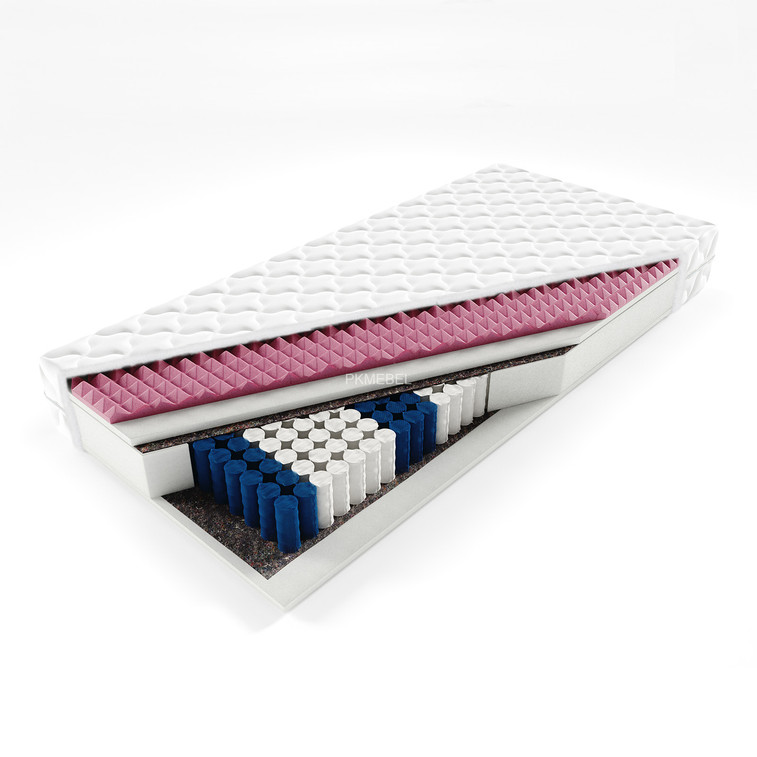 Veľmi kvalitný 7 zónový matrac. Na oboch stranách pokrytý penou. Každá pružina je umiestnená v samostatnom vrecku z textilu.