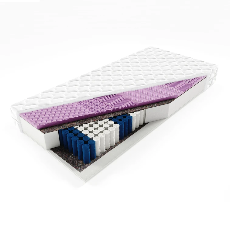 Veľmi kvalitný 7 zónový matrac. Na oboch stranách pokrytý penou. Každá pružina je umiestnená v samostatnom vrecku z textilu.