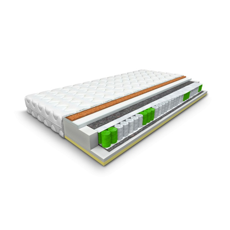 Veľmi kvalitný matrac, ktorý má na jednej strane visco pamäťovú penu. Na druhej strane je kokosová vrstva. Základom je vysoko kvalitný drôt 262 ks/m2. Každá pružina je umiestnená v samostatnom textilnom vrecúšku.