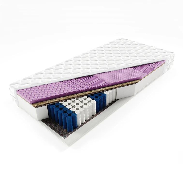 Veľmi kvalitný 7 zónový matrac. Na oboch stranách pokrytý penou. Každá pružina je umiestnená v samostatnom vrecku z textilu. Kokosová vrstva spevňuje matrac a zabraňuje jeho zborteniu.
