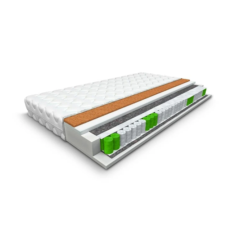 Veľmi kvalitný 7 zónový matrac. Na oboch stranách pokrytý penou a jednostrannou vysokou kokosovou vrstvou. Základom je vysoko kvalitný drôt ks 262 / m2. Každá pružina je umiestnená v samostatnom textilnom vrecúšku.