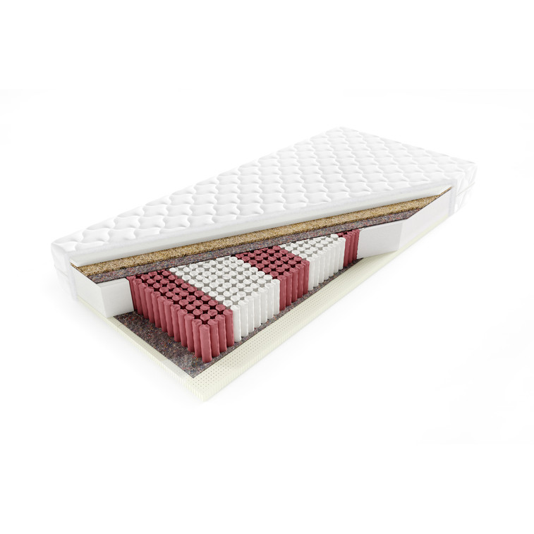 Veľmi kvalitný 7 zónový matrac. Na oboch stranách pokrytý penou. Každá pružina je umiestnená v samostatnom vrecku z textilu. Kokosová vrstva, spevňuje matrac a zabraňuje jeho zrúteniu.