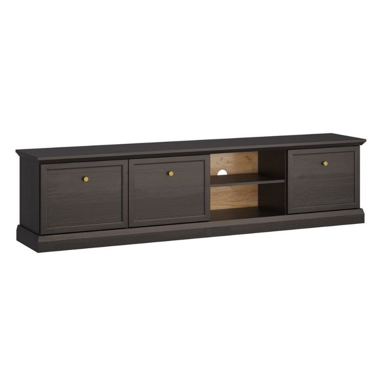 Praktický TV stolík s dvoma priestrannými zásuvkami a policami na TV vybavenie. Čiernohnedý alebo biely dekor s hlbokými prírodnými pórmi dreva má rôzne stupne lesku a pôsobí mimoriadne dynamicky a veľmi rozmanito. Kolekcia Lucca vám umožňuje voľne miešať klasický a moderný štýl.