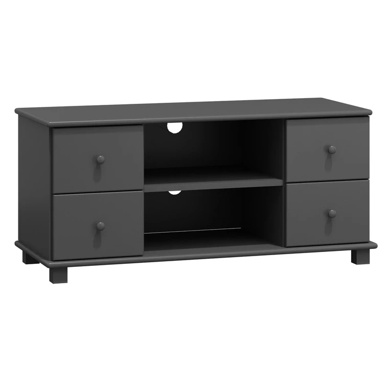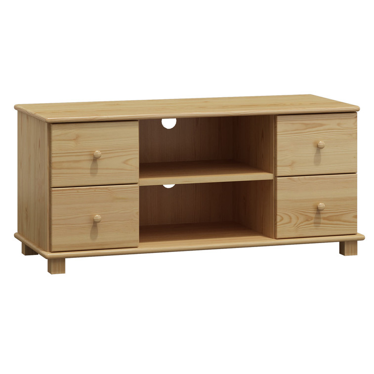 Televízny stolík RTV109 vám umožní bezpečne umiestniť vaše domáce spotrebiče na požadované miesto. Stabilná a odolná konštrukcia je vyrobená z prírodného borovicového dreva, vďaka čomu sa tento kus nábytku ideálne hodí do moderných aj klasických interiérov. Vďaka minimalistickému prevedeniu sa stôl stáva vkusným prvkom, ktorý doplní interiér miestnosti.