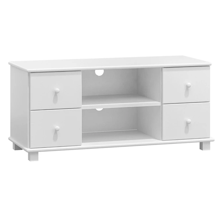 Televízny stolík RTV109 vám umožní bezpečne umiestniť vaše domáce spotrebiče na požadované miesto. Stabilná a odolná konštrukcia je vyrobená z prírodného borovicového dreva, vďaka čomu sa tento kus nábytku ideálne hodí do moderných aj klasických interiérov. Vďaka minimalistickému prevedeniu sa stôl stáva vkusným prvkom, ktorý doplní interiér miestnosti.