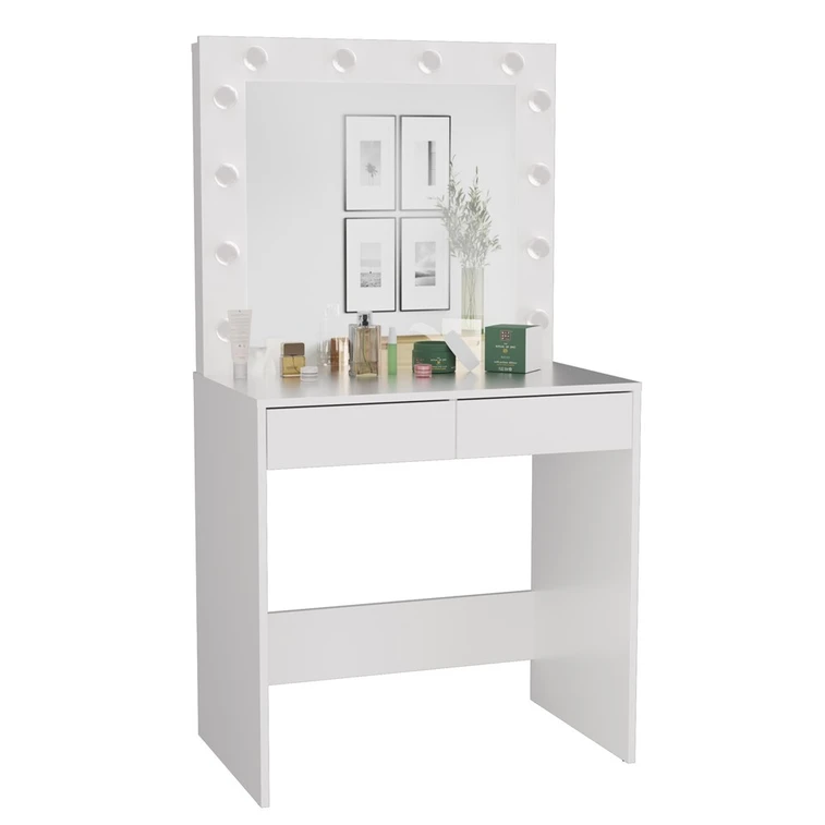 Toaletný stolík je vyrobený z pevnej laminovanej dosky, ktorá je odolná proti oderu a poškodeniu. Univerzálny vzhľad splní očakávania každého, kto ocenia kombináciu jednoduchosti a elegancie.