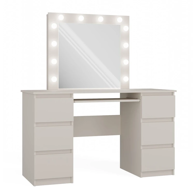 Toaletný stolík je vyrobený z pevnej laminovanej dosky, ktorá je odolná proti oderu a poškodeniu. Univerzálny vzhľad splní očakávania každého, kto ocení kombináciu jednoduchosti a elegancie.