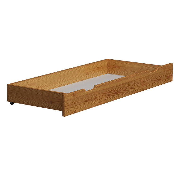 Zásuvka pod posteľ vyrobená z masívneho dreva. Zásuvka je ručne morená a dvakrát lakovaná ekologickým lakom. Je veľmi praktická. Zásuvka má kolieskami, čo uľahčuje manipuláciu.