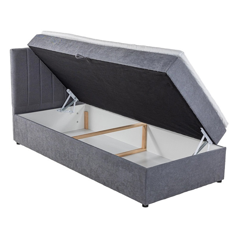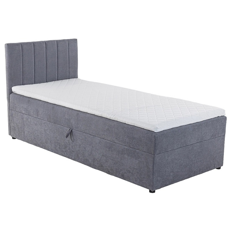 Jednolôžková váľanda Kuba, 90x200 cm, s úložným priestorom a čelom. Matrac má pružinový systém Bonell. Jednotlivé pružiny sú vzájomne prepojené prídavnými špirálami, vďaka ktorým držia stály tvar a neuvoľňujú sa. Válenda je potiahnutá látkou Soro