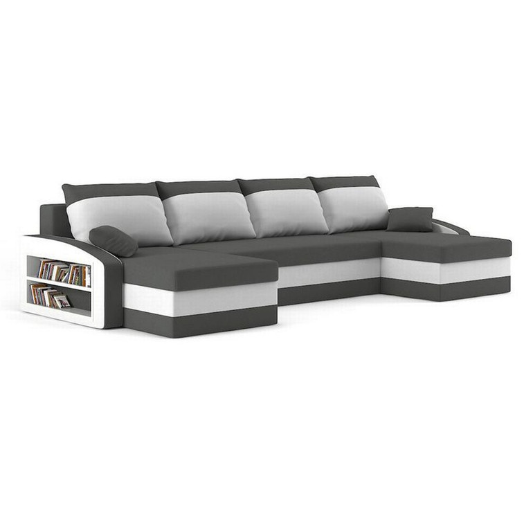 Veľká rohová rozkladacia sedacia súprava s poličkou SPARTAN Sivá/biela