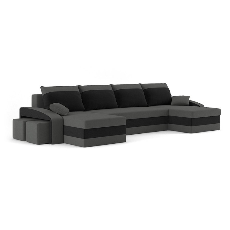 Veľká rohová rozkladacia sedacia súprava s taburetkami Spartan Sivá/čierna