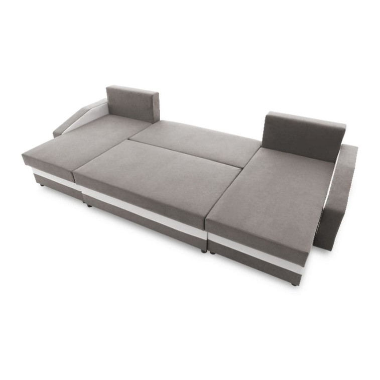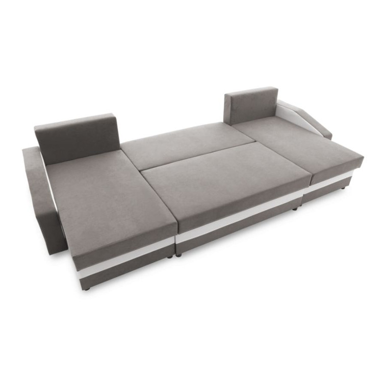 Veľká rohová rozkladacia sedacia súprava SPARTAN. Pevná konštrukcia z dreva a OSB dosky. Moderný dizajn vhodný do všetkých súčasných interiérov.
