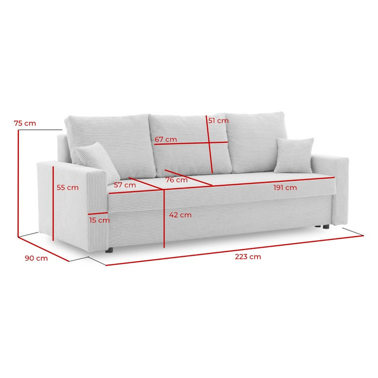 Veľká rozkladacia pohovka AIKIDO. Pevná konštrukcia z dreva a OSB dosky. Poťah z kvalitnej látky Poso v mnohých moderných farebných odtieňoch. Jednoduché rozkladanie pohovky na lôžkovú podobu. Moderný dizajn vhodný do všetkých súčasných interiérov.