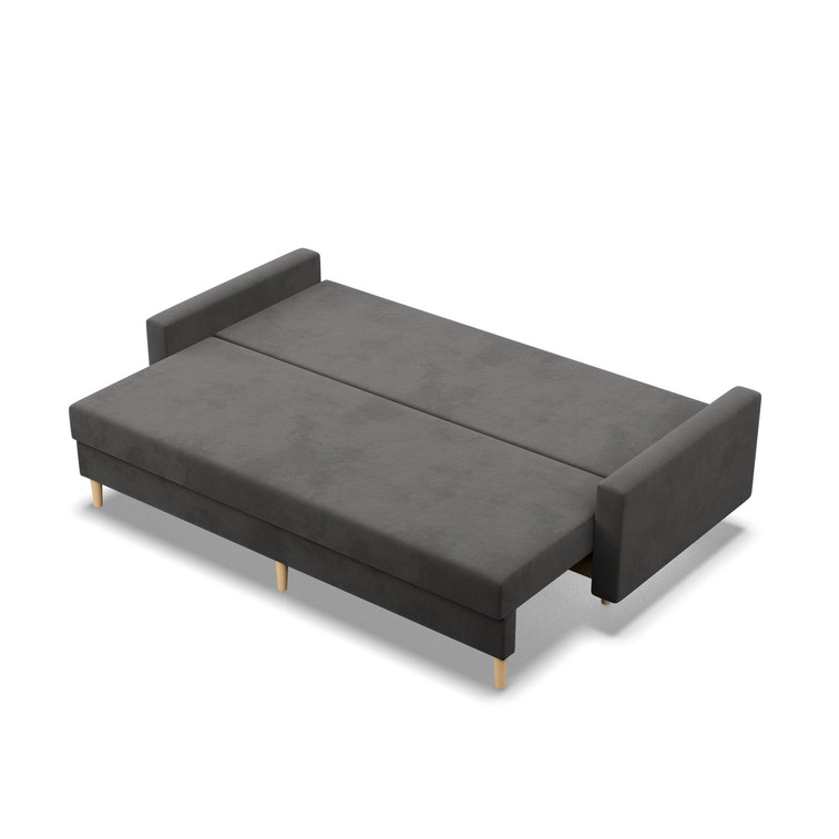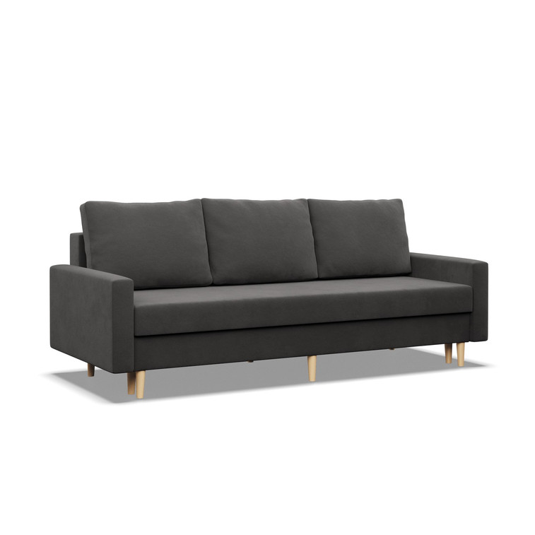Pevná konštrukcia z dreva a OSB dosky. Jednoduché rozkladanie pohovky na lôžkovú podobu. Moderný škandinávsky dizajn vhodný do všetkých súčasných interiérov.