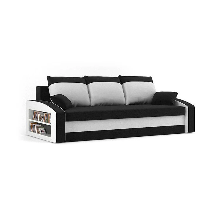 Veľká rozkladacia pohovka HEWLET s poličkou model 2 Čierna/biela