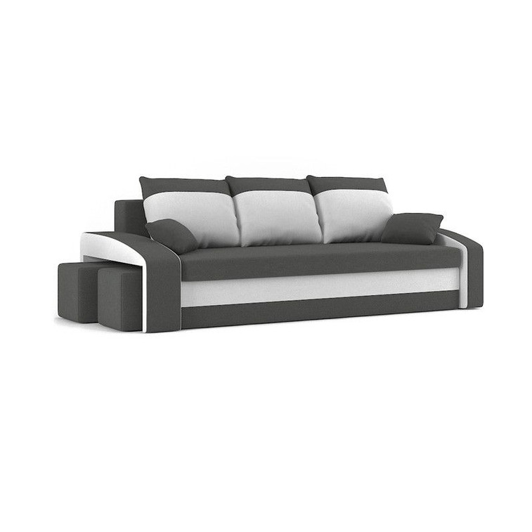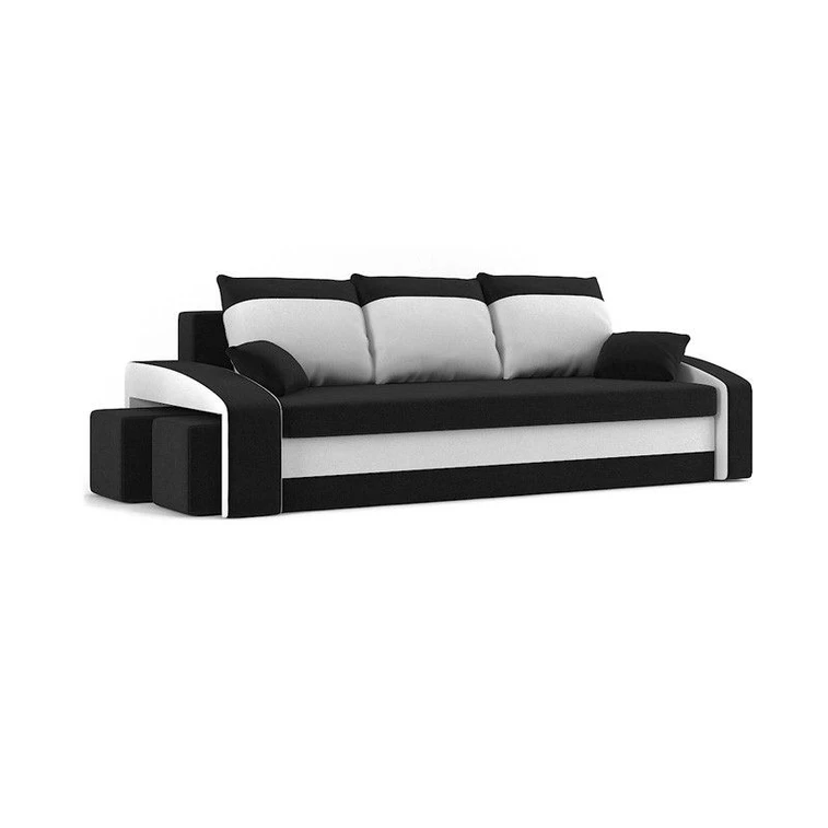Veľká rozkladacia pohovka HEWLET s taburetkami model 2 Čierna/biela