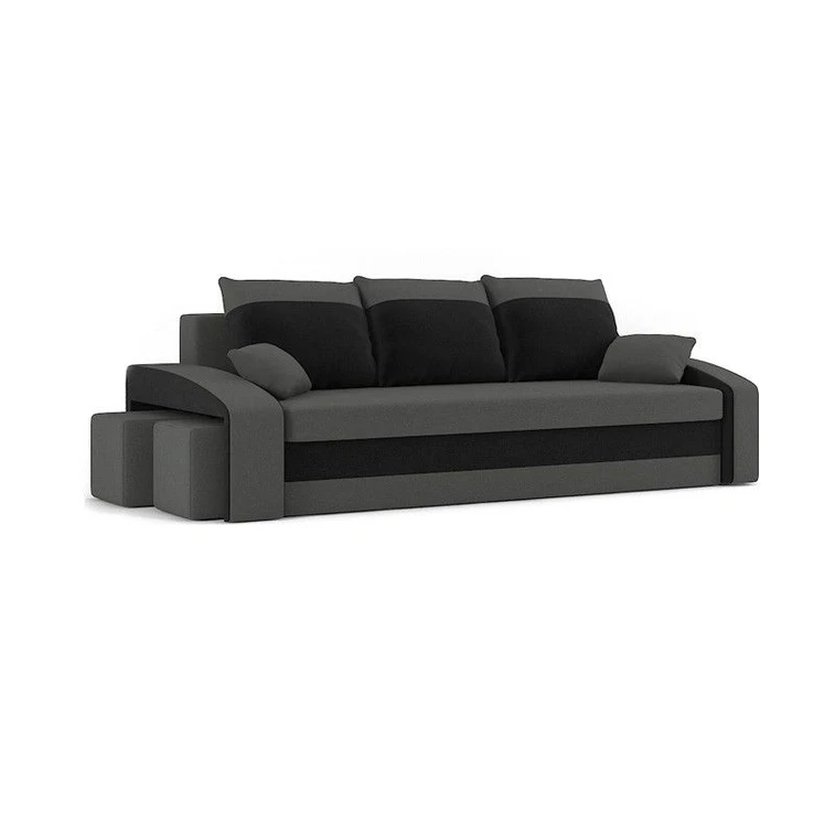 Veľká rozkladacia pohovka HEWLET s taburetkami model 2 Sivá/čierna