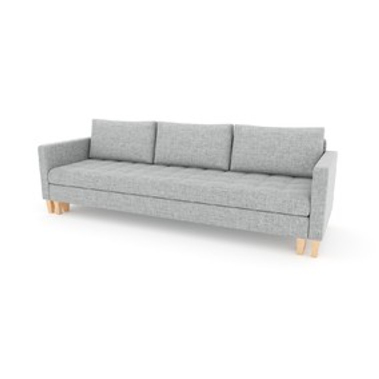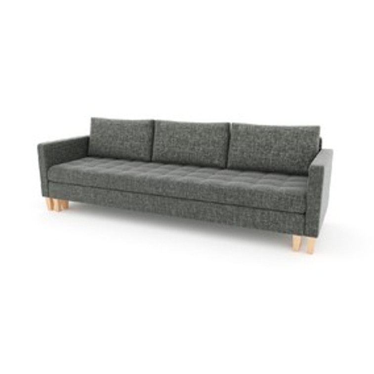 Pevná konštrukcia z dreva a OSB dosky. Jednoduché rozkladanie pohovky na lôžkovú podobu. Moderný škandinávsky dizajn vhodný do všetkých súčasných interiérov.