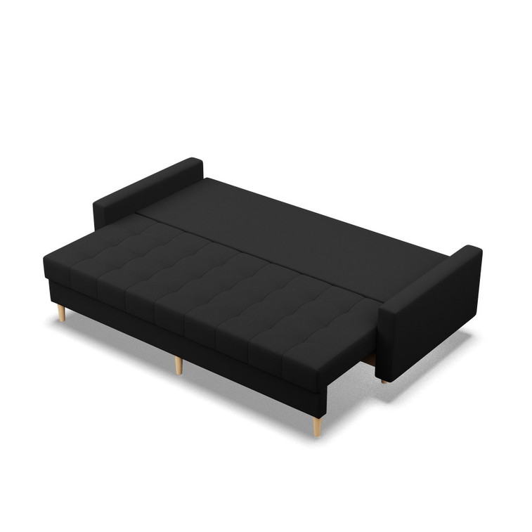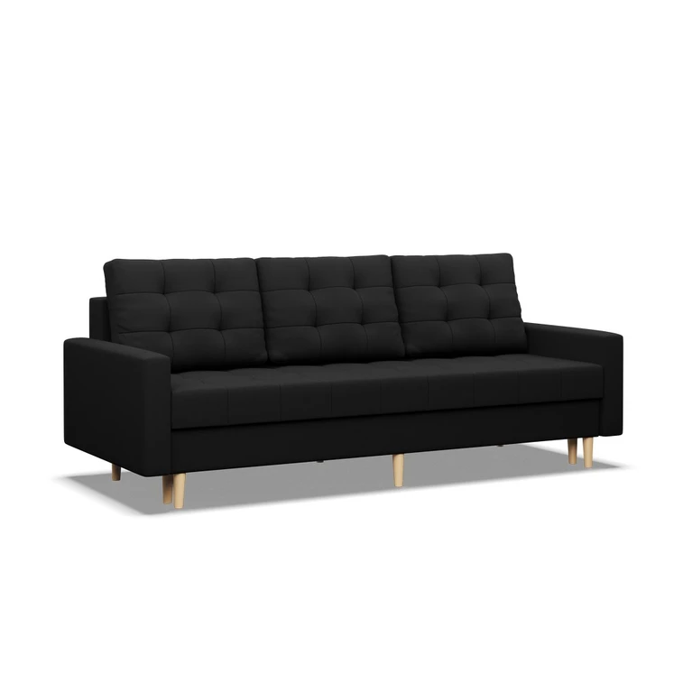Pevná konštrukcia z dreva a OSB dosky. Jednoduché rozkladanie pohovky na lôžkovú podobu. Moderný škandinávsky dizajn vhodný do všetkých súčasných interiérov.