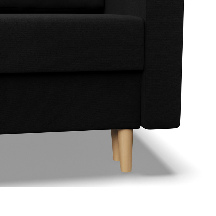 Pevná konštrukcia z dreva a OSB dosky. Jednoduché rozkladanie pohovky na lôžkovú podobu. Moderný škandinávsky dizajn vhodný do všetkých súčasných interiérov.
