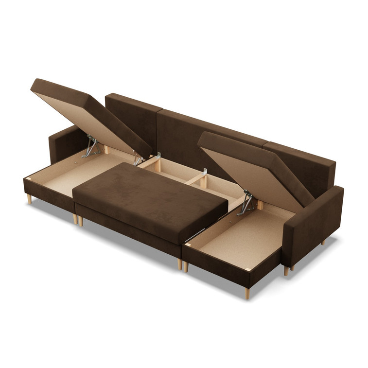 Pevná konštrukcia z dreva a OSB dosky. Jednoduché rozkladanie pohovky na lôžkovú podobu. Moderný škandinávsky dizajn vhodný do všetkých súčasných interiérov.