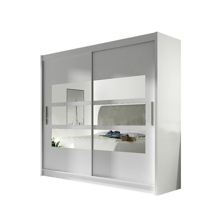 Šatníková skriňa systému Bega III, posuvné dvere a v prostriedku praktické veľké zrkadlo. Ideálna pre spálňu či chodbu.