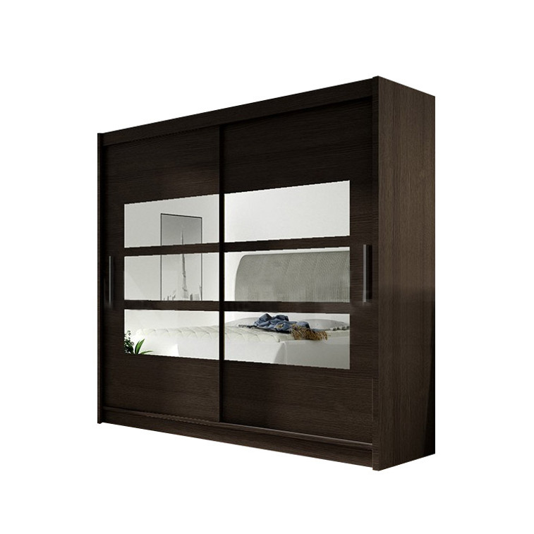 Šatníková skriňa systému Bega III, posuvné dvere a v prostriedku praktické veľké zrkadlo. Ideálna pre spálňu či chodbu.