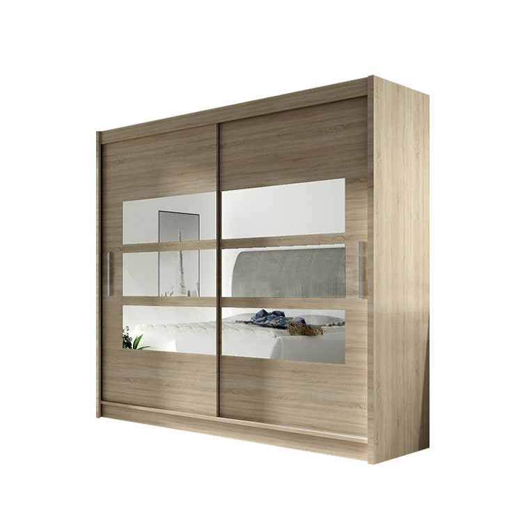 Šatníková skriňa systému Bega III, posuvné dvere a v prostriedku praktické veľké zrkadlo. Ideálna pre spálňu či chodbu.