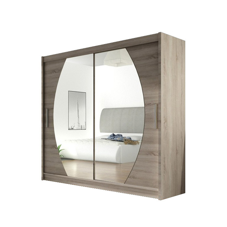 Šatníková skriňa Bega IV navrhnutá špeciálne pre ľudí, ktorí ocenia elegantný a nevšedný dizajn. Ďalším plusom je funkčné usporiadanie regálov a tyč na ramienka vo vnútri skrine.