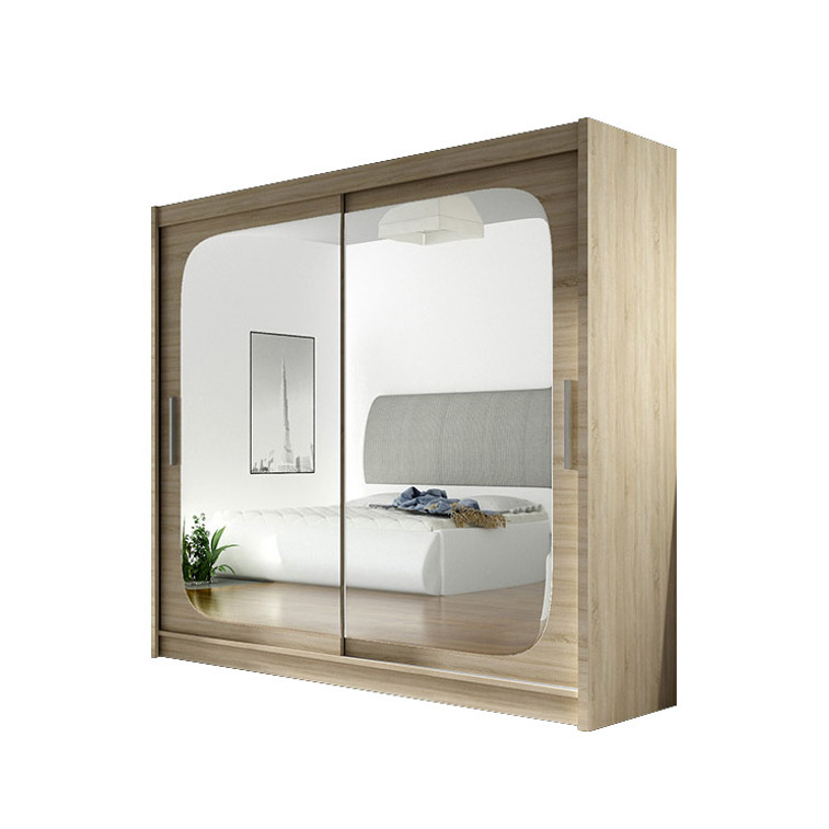 Priestranná skriňa Bega VII je vyrobená v modernom dizajne a ponúka veľké množstvo praktického úložného priestoru (viď obrázok). Neoceniteľný je systém trendových posuvných dverí so zrkadlom, ktorý uľahčuje manipuláciu a šetrí priestor v interiéri. Teleso skrine a dvere sú vyrobené z kvalitného laminátu (16 mm). Šatníková skríň Bega si môžete doplniť existujúce vybavenie izby. Údržba je jednoduchá, povrch je ľahko umývateľný, odolný voči pôsobeniu vody a zvýšenej teploty. Skriňa je dodávaná v rozmontovanom stave a v rôznom farebnom prevedení. V prípade otázky nás neváhajte kontaktovať.