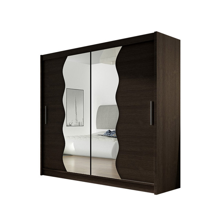Šatníková skriňa BEGA X je navrhnutá špeciálne pre ľudí, ktorí ocenia elegantné prevedenie. Skriňa sa otvára pomocou posuvných dverí, na ktorých sú umiestnené dve zrkadlá. Vnútorná časť skrine je vybavená policami a na pravej strane je umiestnená vešiaková tyč. Usporiadanie políc viď obrázok. Skriňa má hliníkové ložiskové pojazdy Micra Sevroll. Korpus aj dvierka sú vyrobené z kvalitnej drevotriesky (16 mm ). Dodávame v rozloženom stave.